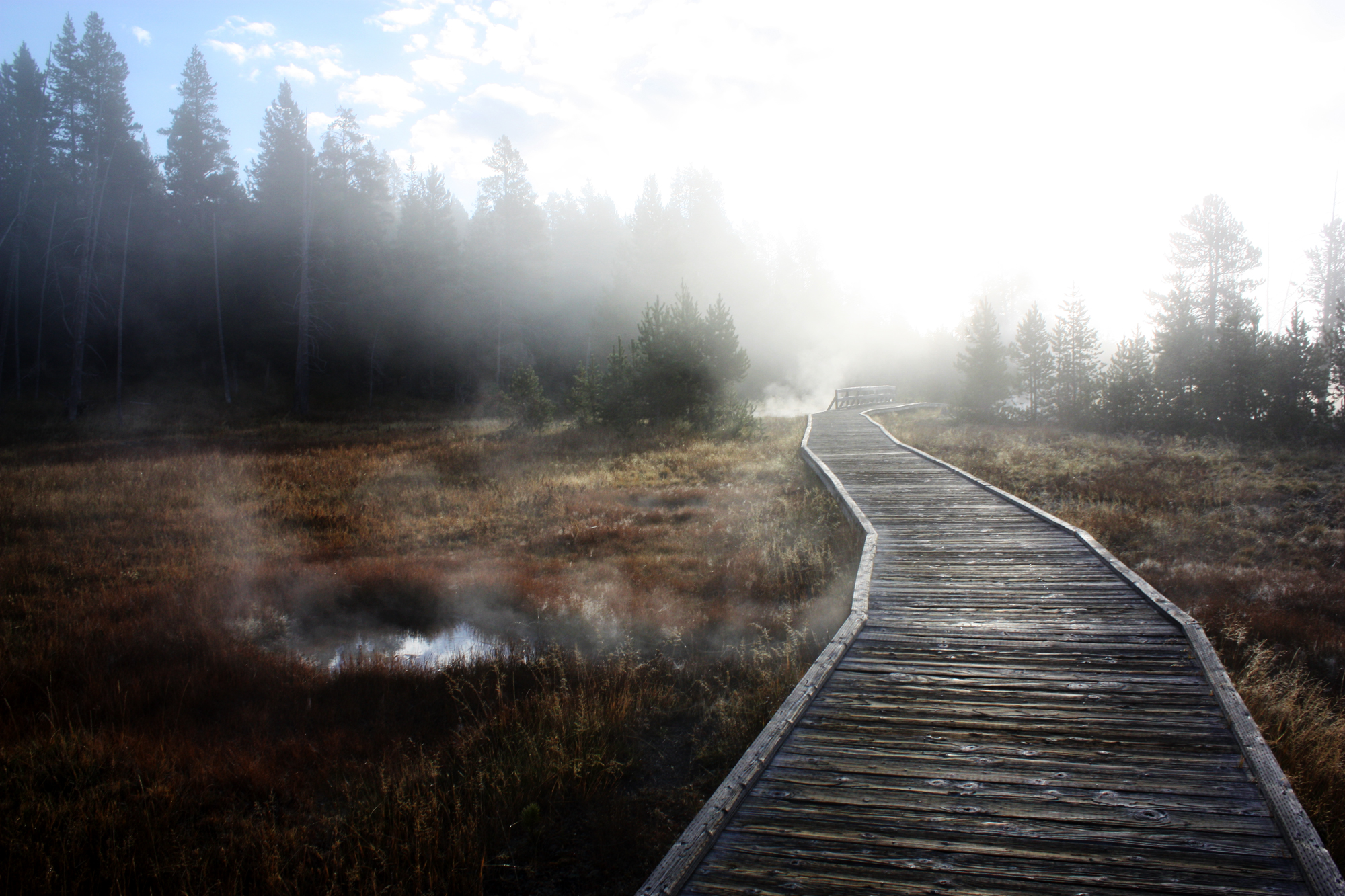 Yellowstone is een adembenemende park en soms is dat ook echt letterlijk zo, want vanuit borrelden geisers stijgt vaak een zwaveldamp omhoog die je maar voor lief moet nemen..