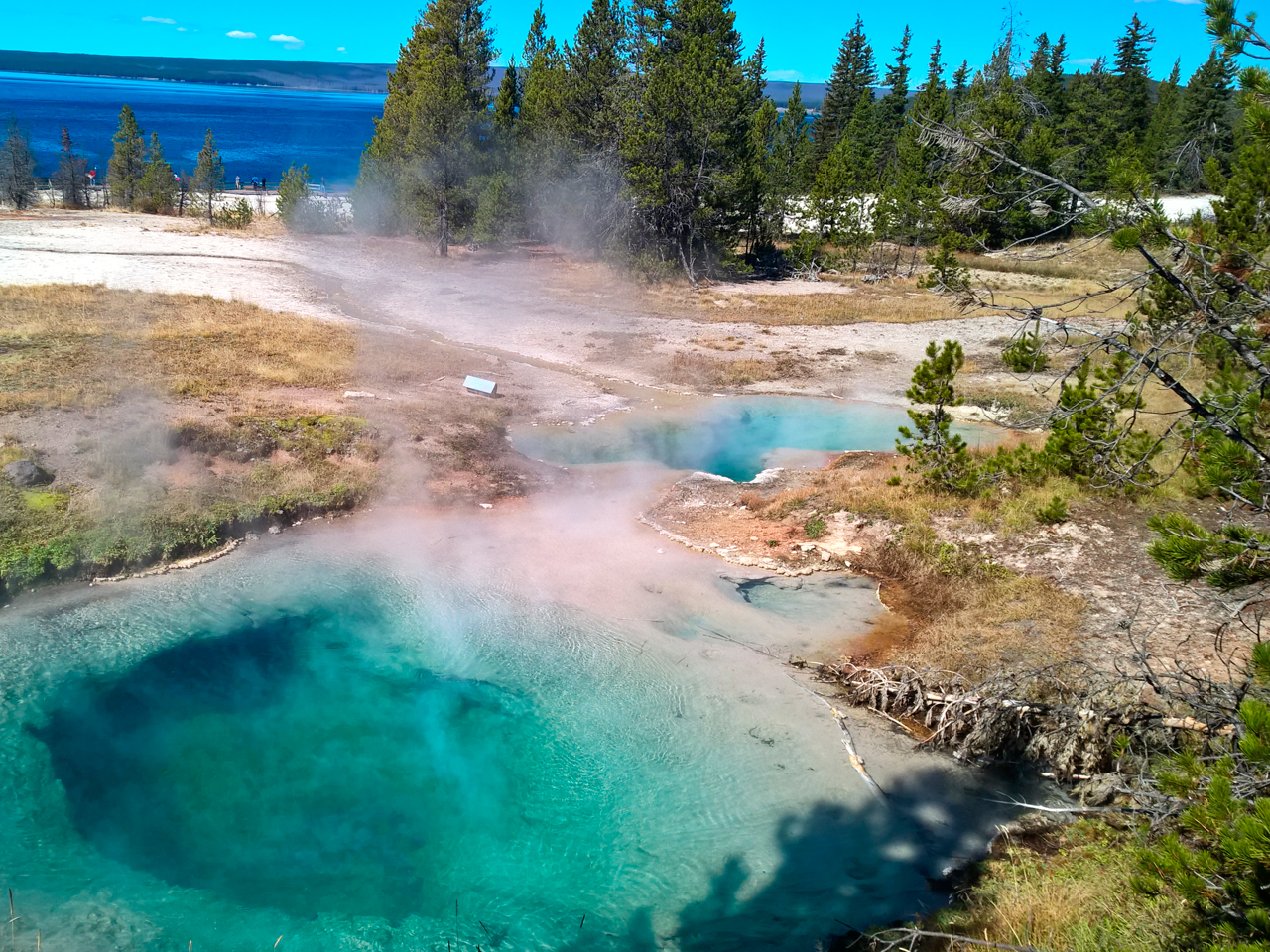 Via boardwalks wandel je langs de meest prachtige warmwaterbronnen en geisers. Midway Geyser Basin