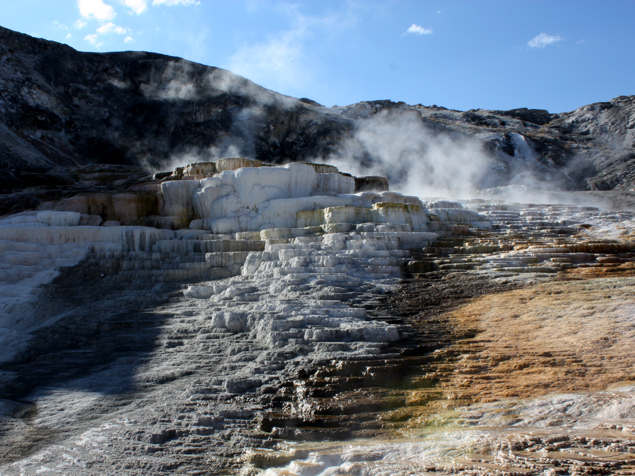 Neem hier alvast een kijkje bij de terrassen van tavertine bij Mammoth Hot Springs. Heb je ooit zoiets gezien?