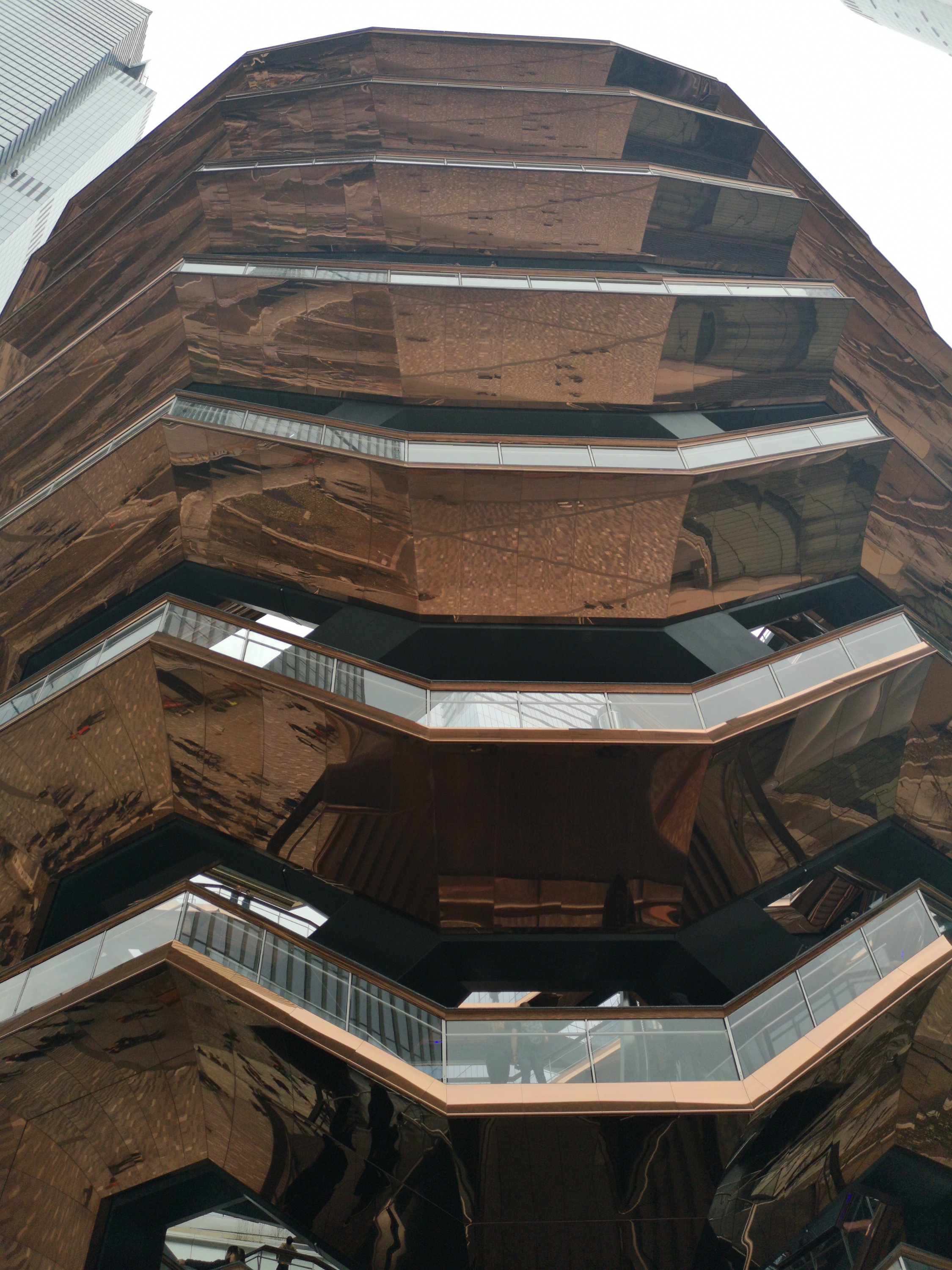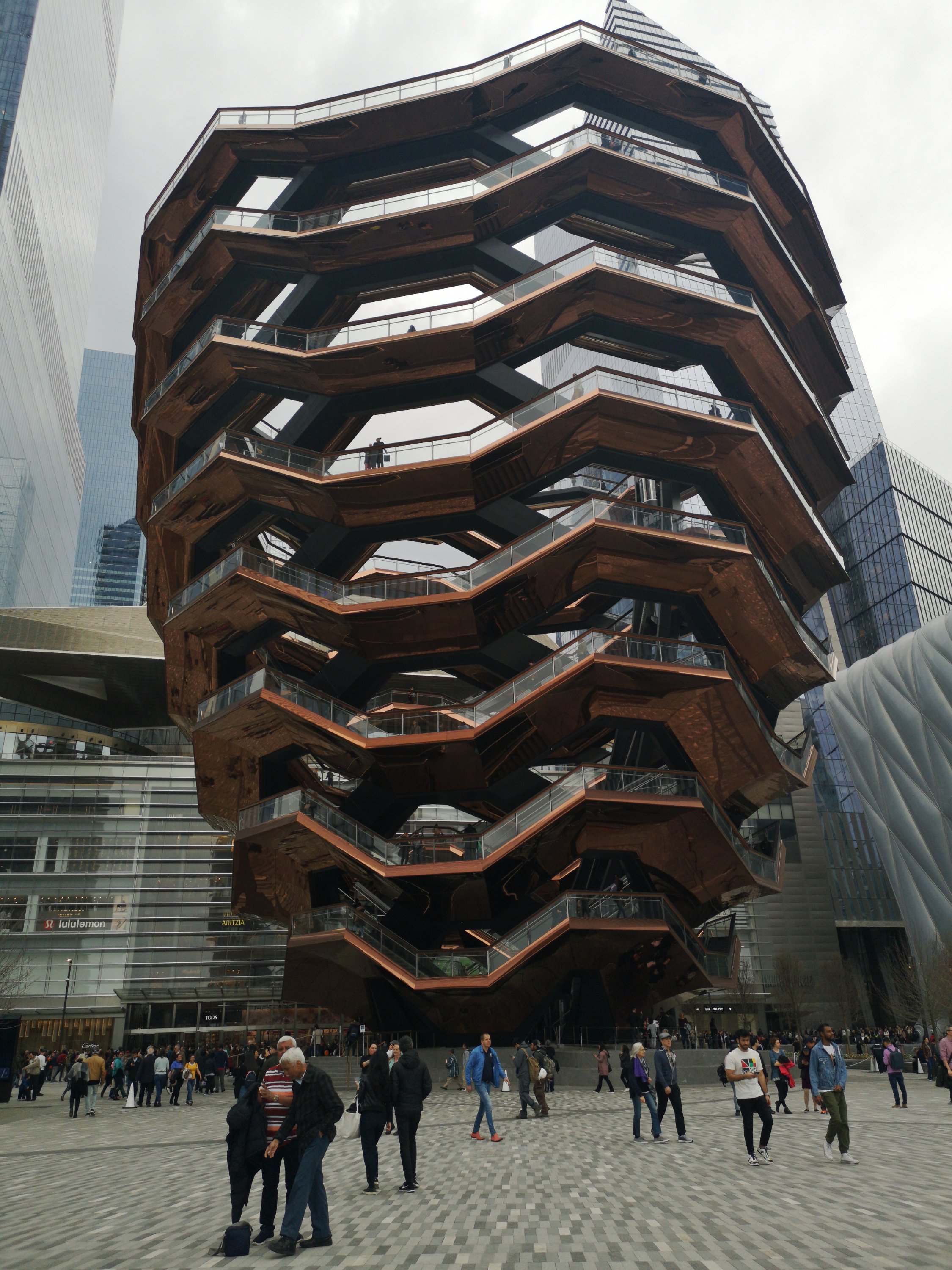 We lopen naar het nieuwste pronkstuk van de stad, The Vessel. Bij Hudson Yards, hier is ook een overdekt winkelcentrum.