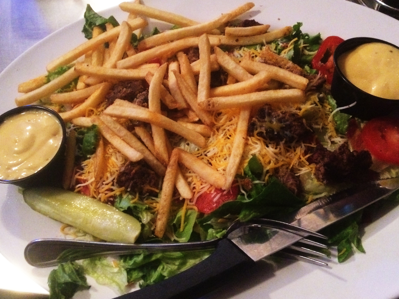 De salades bevielen me wel in de USA, dus ik koos er weer eentje uit: The Coolest Salad Ever. Stiekem is dat een cheeseburger salad. Een soort kapsalon, maar dan met hamburger!
