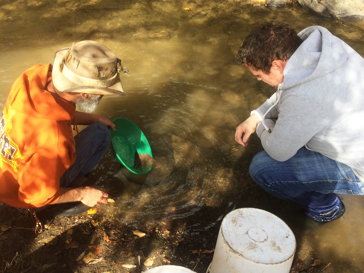 Nadat ik een afspraak had gemaakt om goud te gaan zoeken tijdens een claim-tour, reden we een paar dagen later naar de locatie. Daar werden we opgewacht door RattleSnake Randy. Een professional in goud zoeken. We reden achter hem aan en even verderop konden we aan de slag bij een beek. Randy deed voor hoe we alles moesten doen en vertelde ons over het goud zoeken en hoe hij aan de naam RattleSnake Randy kwam. Hij vertelde ook dat hij vorig jaar met Ozzy Osbourne en zoon Jack naar goud had gezocht voor het programma Ozzy and Jack’s World Detour.