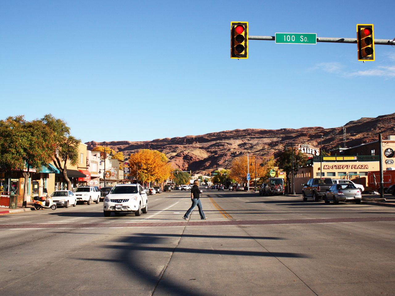 Moab is een leuke plek vol winkeltjes, hotels en restaurantjes.
