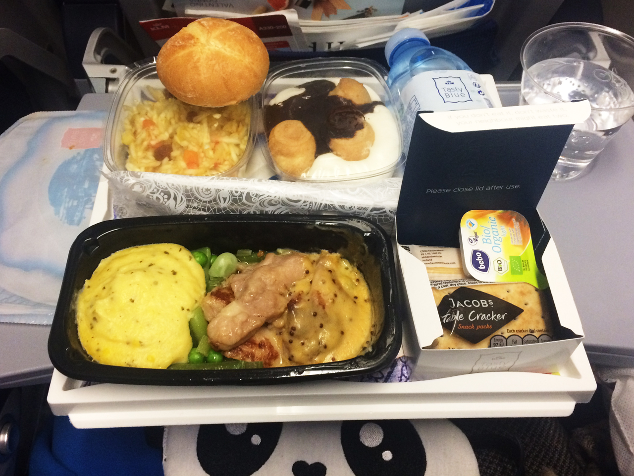 Dan is het zover. We stappen In het vliegtuig. Het lijkt hier trouwens ruimer dan het vorige vliegtuig van KLM waarmee we vlogen. Of we zijn al aan het krimpen. We genieten van het vliegtuigvoer en proberen wat te slapen.