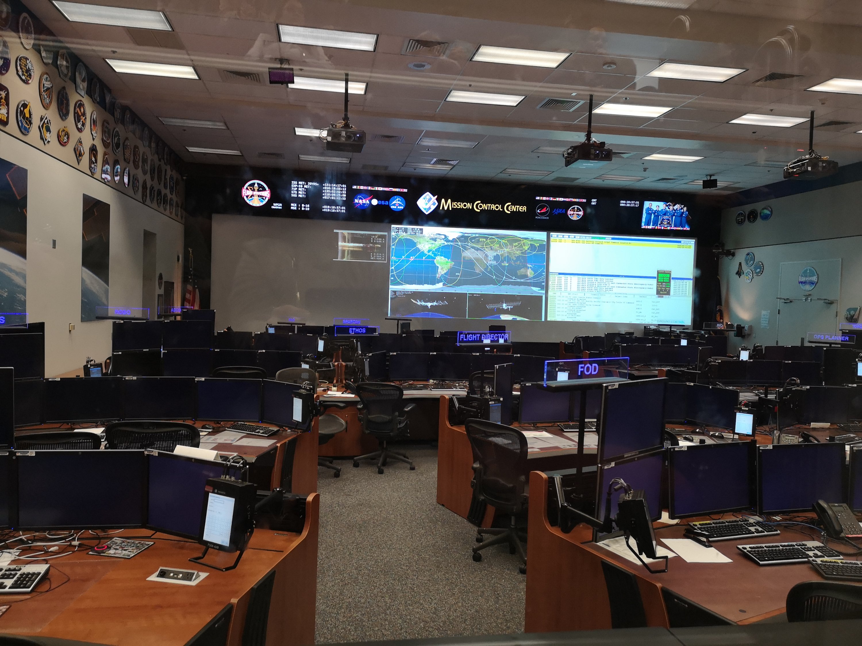 Met een hobbelige tram maken we een tour naar het mission control center.