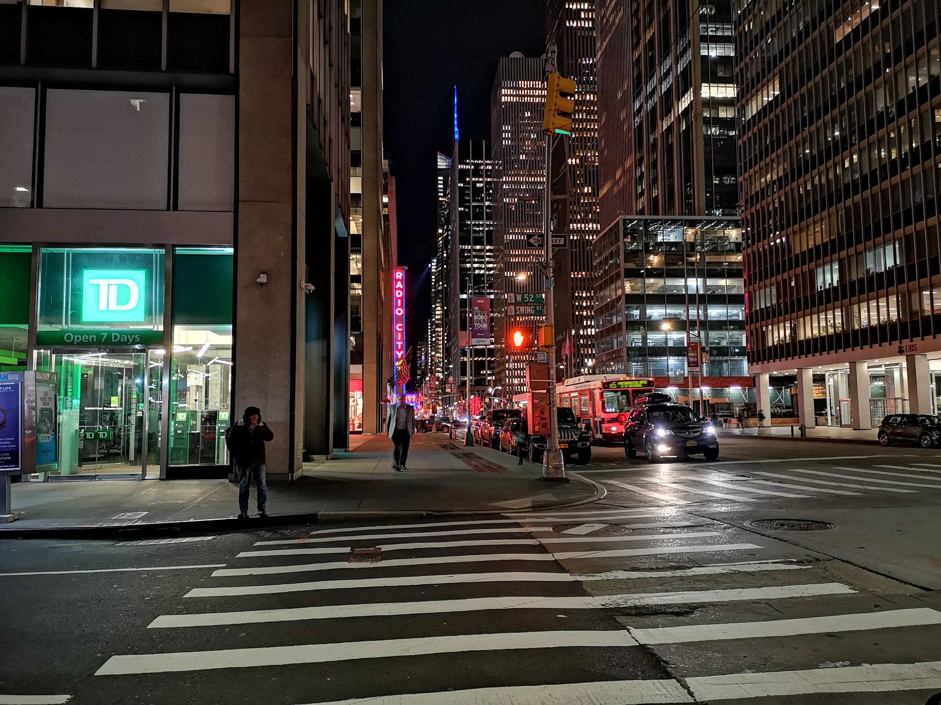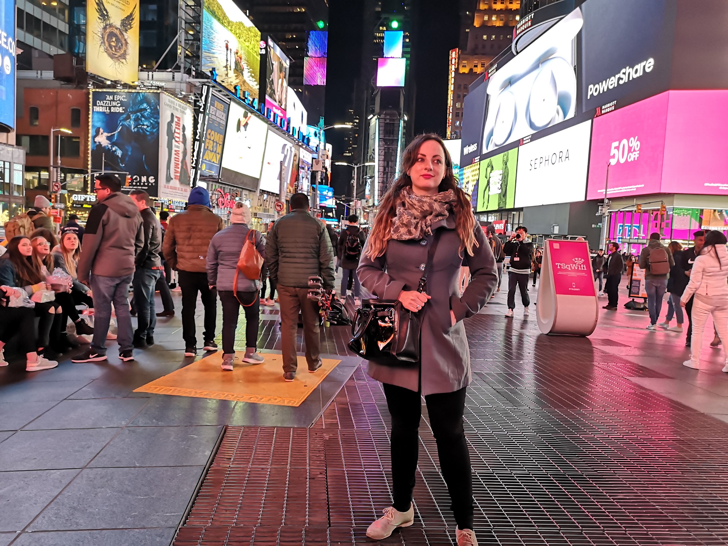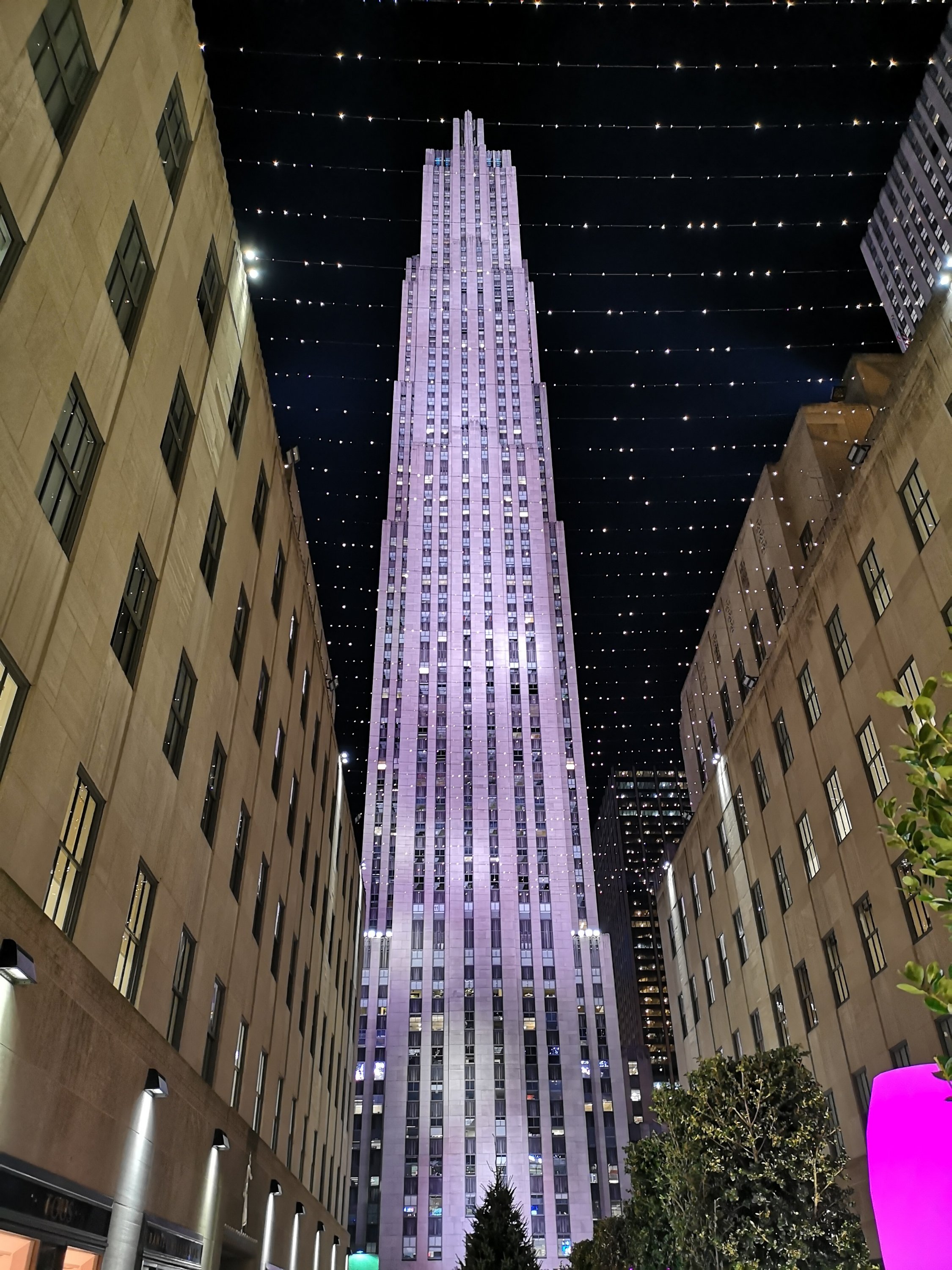 We kleden ons weer om en lopen dan langs Rockefeller Centre het drukke Times Square.