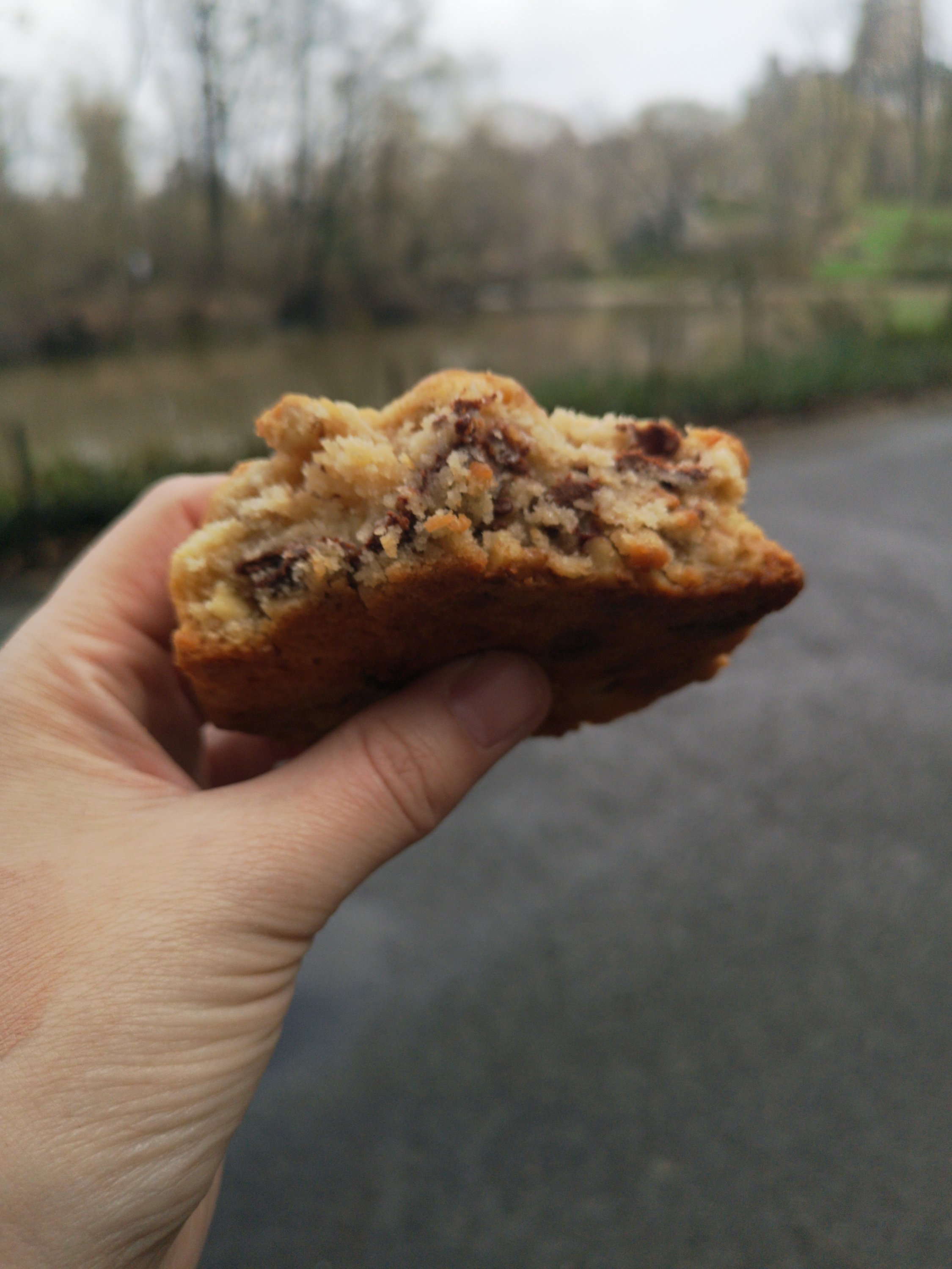 Na de maaltijd van Black Tap van gisteren hebben we niet echt honger, dus ontbijt ik met een koekje van Levain Bakery.