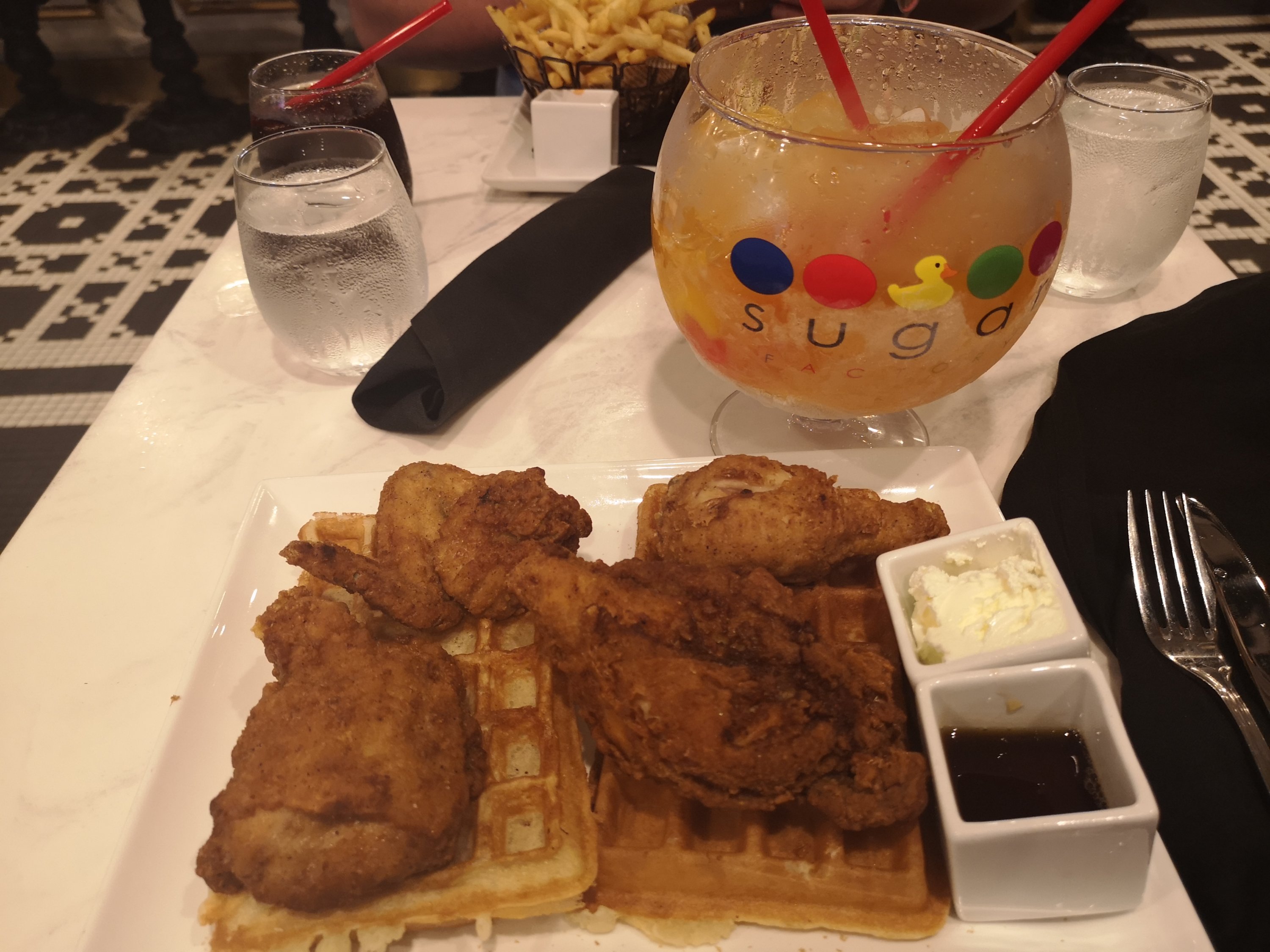 En chicken en wafels… Best een bijzondere combinatie, maar wel lekker!