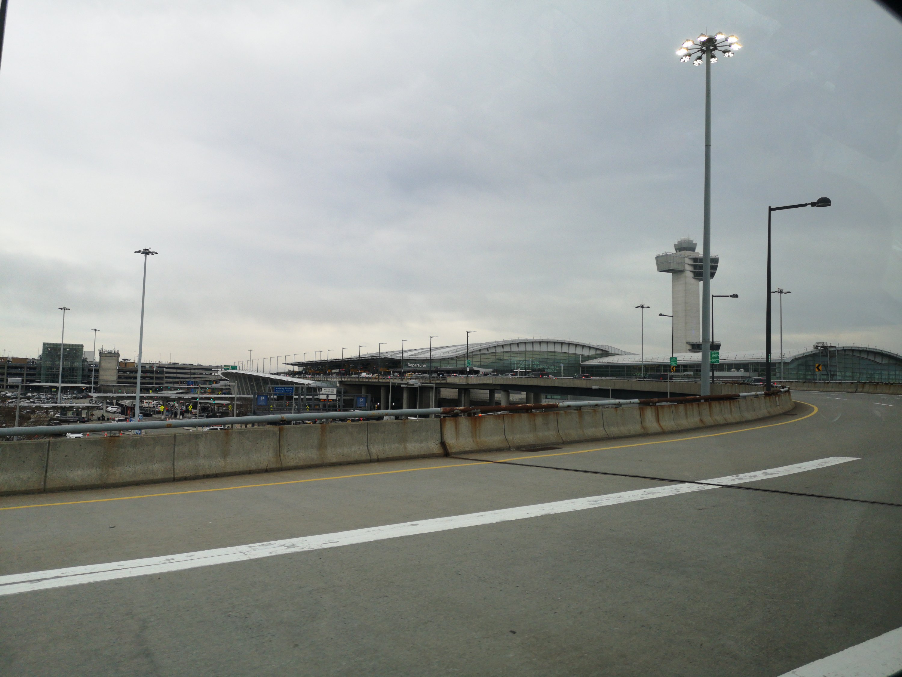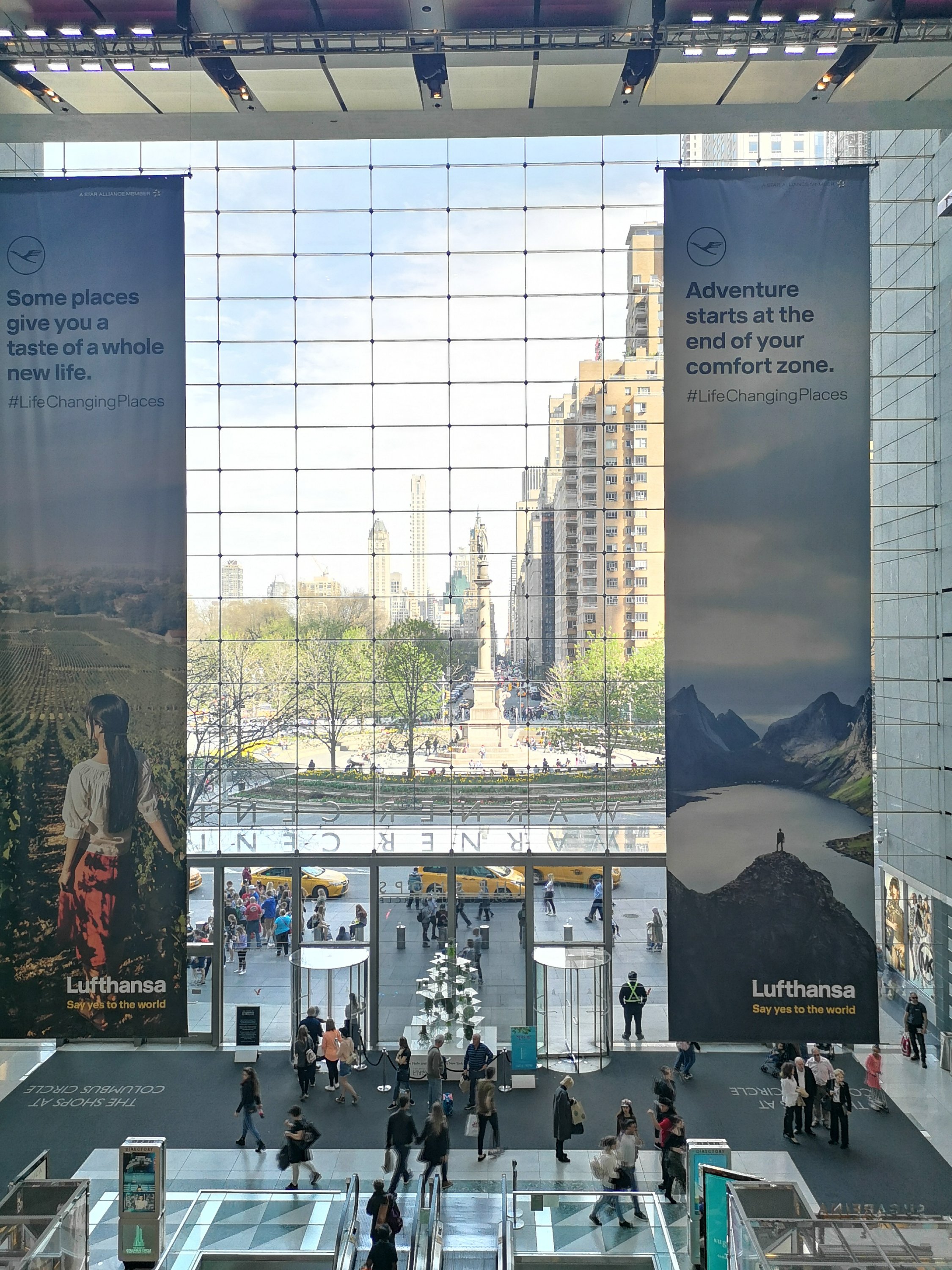 Via de winkels bij Columbus Circle lopen we terug naar het hotel waar we de koffers konden achterlaten. Met de taxi gaan we naar het vliegveld JFK.