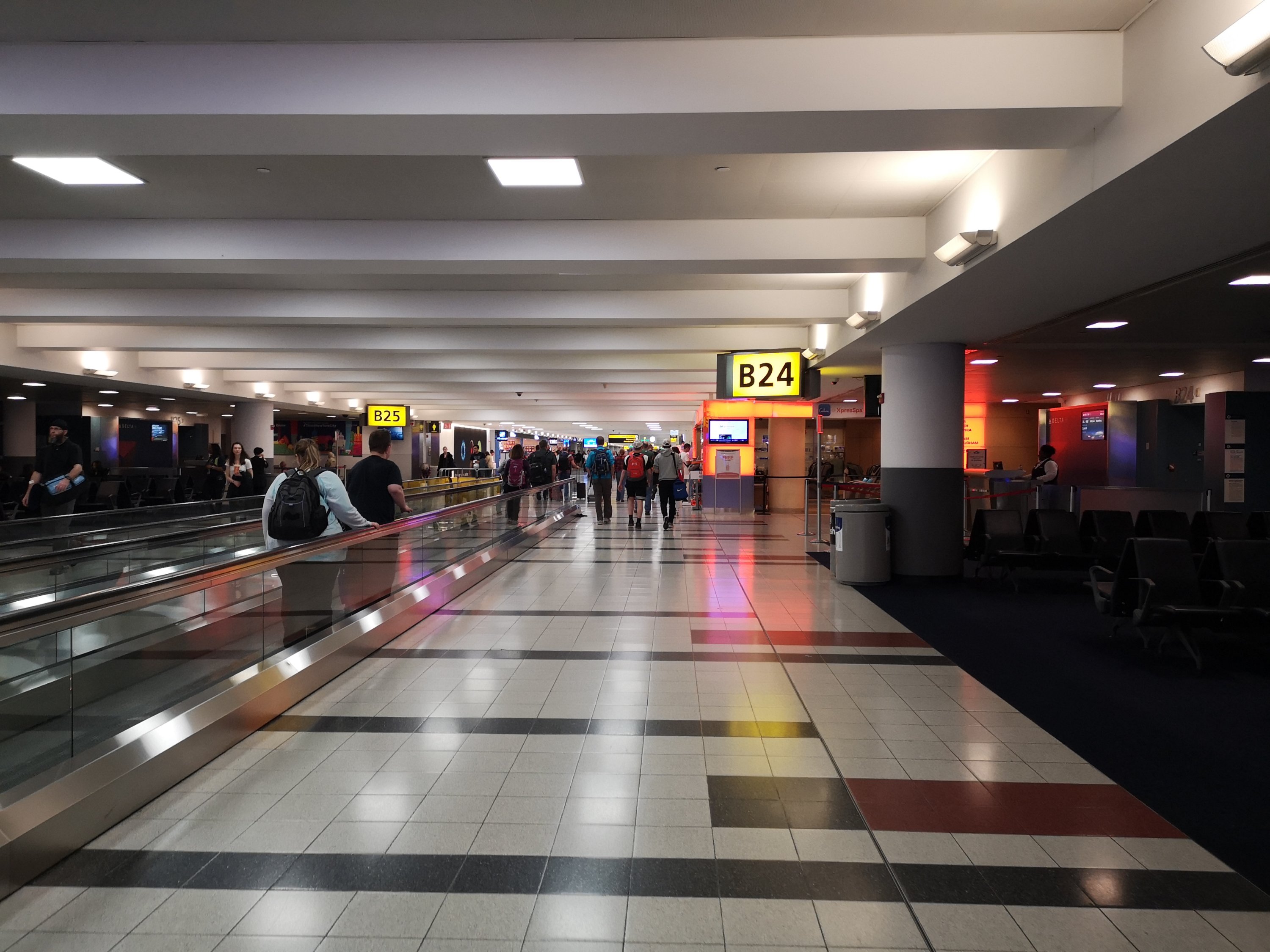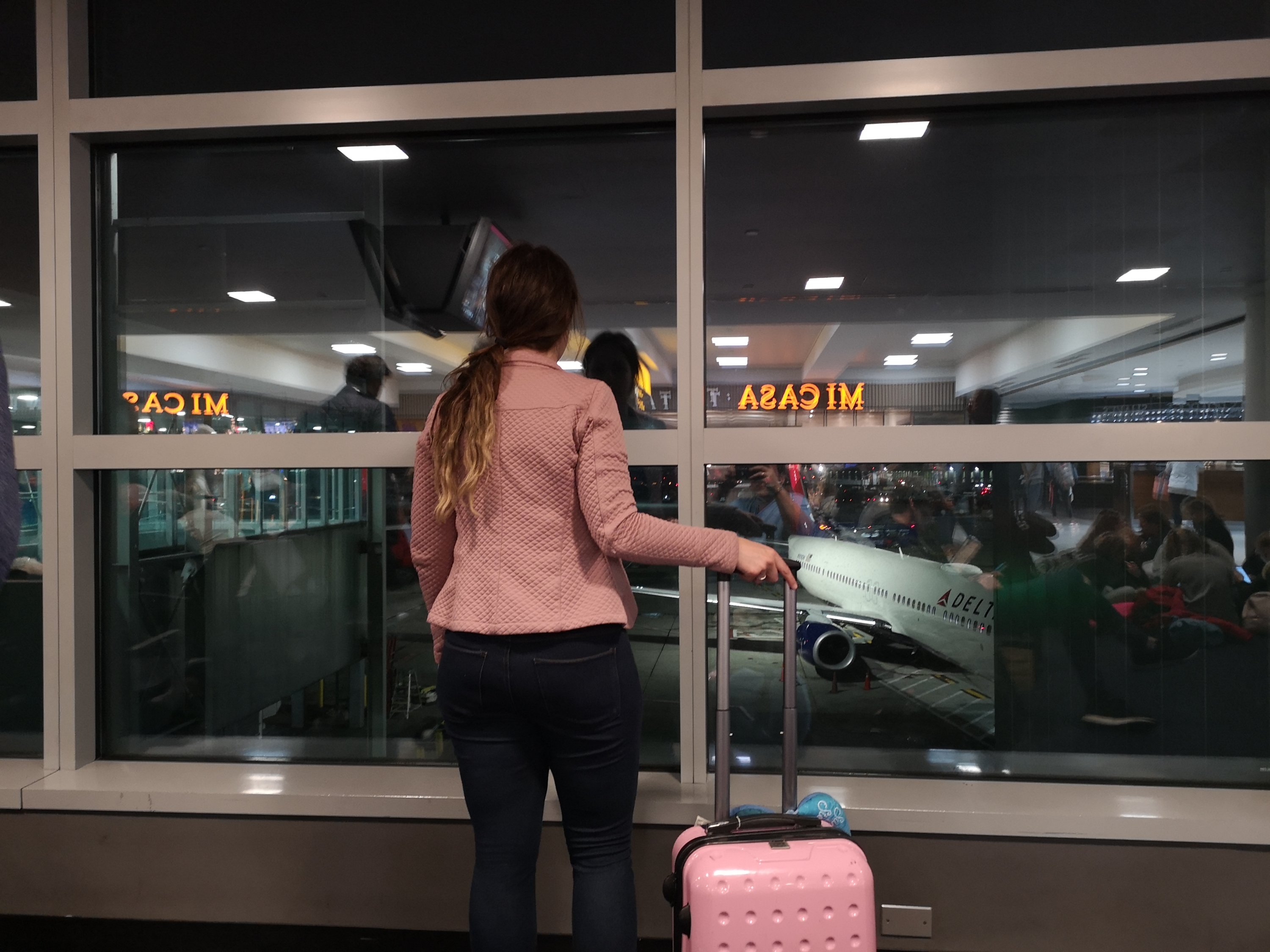 We zijn op tijd, maar het puzzelen met het gewicht van de koffers is best lastig en de controle duurt lang.