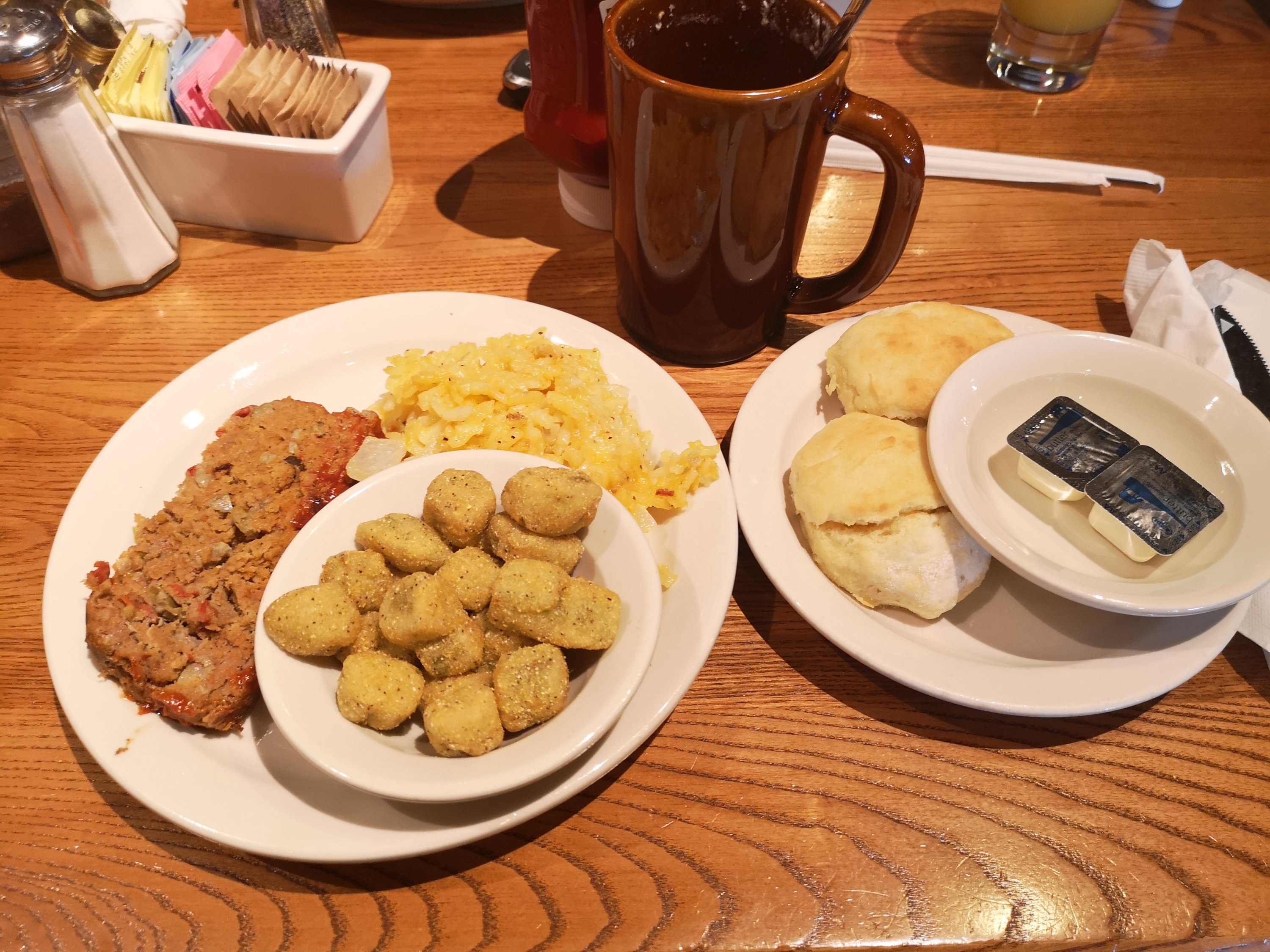 Na een paar uur rijden, maken we een tussenstop voor lunch bij Cracker Barrel.