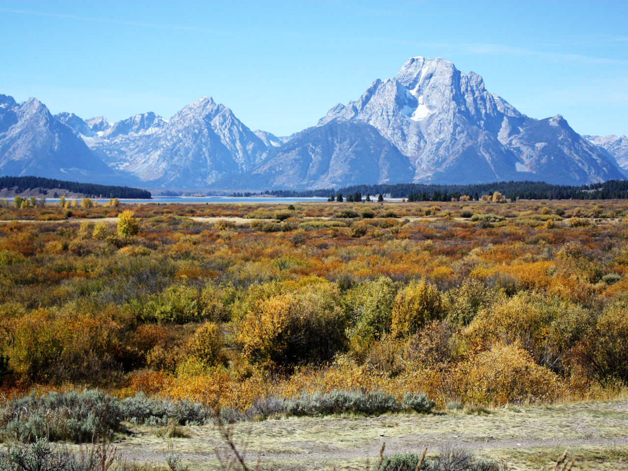 Bijzonder is dat de Tetonrange geen voorgebergte heeft. De bergen lijken plots te beginnen. Dit is goed te zien bij Mountain View Turnout.