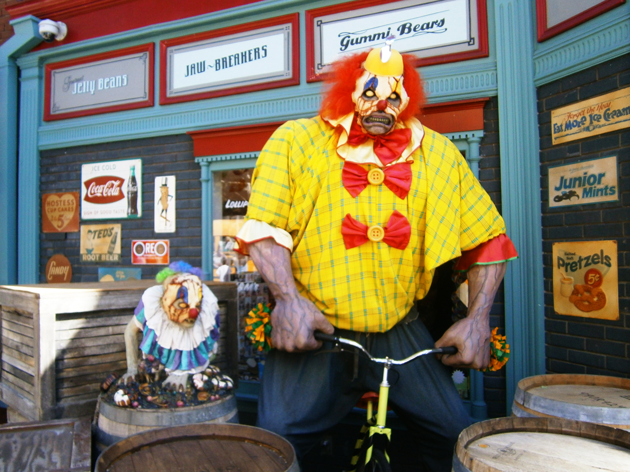 Ik had in Nederland al tickets gekocht via internet, ook voor de Halloween Horror Night. We moeten eventjes wachten en mogen dan naar binnen. Het park is helemaal in Halloween stijl ingericht. Overal staan enge poppen en het is heel mooi gemaakt!