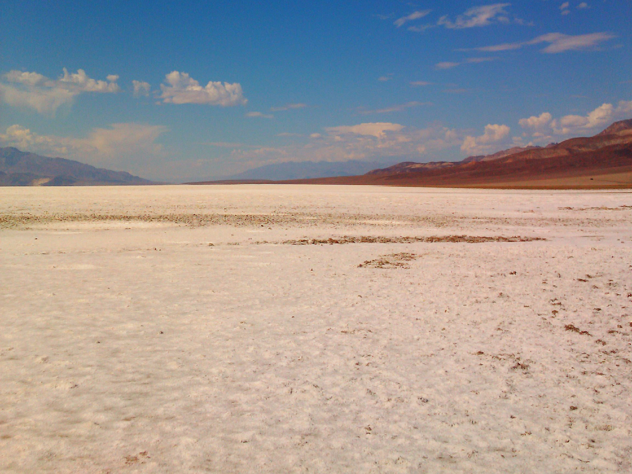 Uiteindelijk komen we aan bij Badwater Basin. Dit is het laagste punt van Amerika. Met 85,5 meter onder de zeespiegel. Er is een soort zoutvlakte wat wel iets wegheeft van een besneeuwde grond. Dit is het allerheetste punt. En dat is te voelen. Lopen gaat heel zwaar. Net alsof je langzaam geroosterd wordt. Het is heel bijzonder om daar rond te lopen, want zulke temperaturen zijn niet normaal. Wat een luxe om dan even later je koele auto in te kunnen vluchten.
