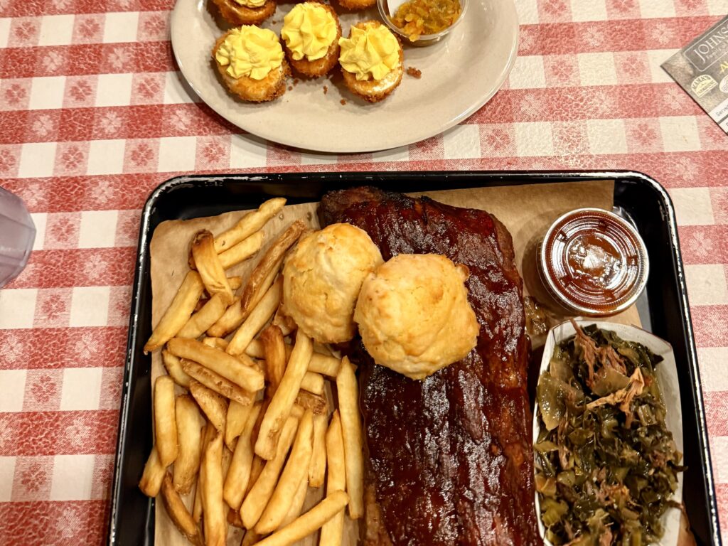 ’s Avonds willen we een nieuw restaurant proberen. Het is lastig kiezen, want er zijn veel goede restaurants in Gatlinburg. We besluiten naar Bennett’s Pit BBQ restaurant te gaan. Het is niet druk en nadat we besteld hebben, is het eten er razendsnel. We delen de devils eggs en ik neem de ribs. Je mag de bijgerechten weer kiezen en ik kies voor iets wat ik nog nooit gehad heb: collared greens. Het is niet echt lekker. Het blijkt een soort boerenkool te zijn. De rest is goed, maar onze favoriet in Gatlinburg blijft Cherokee Grill.