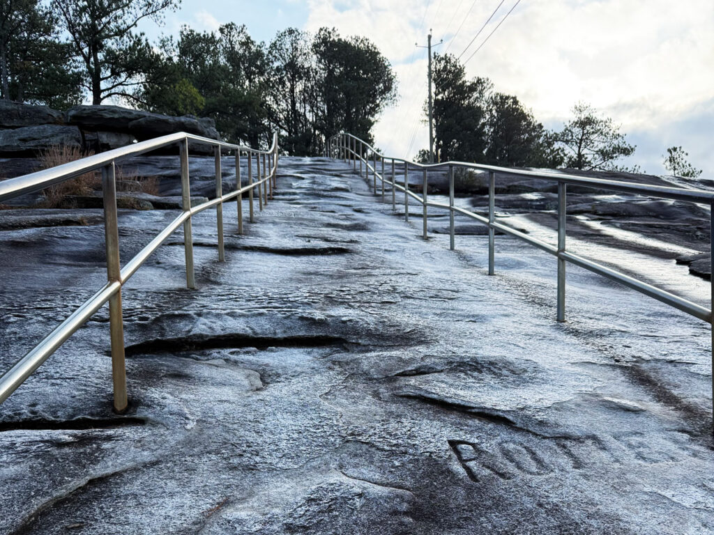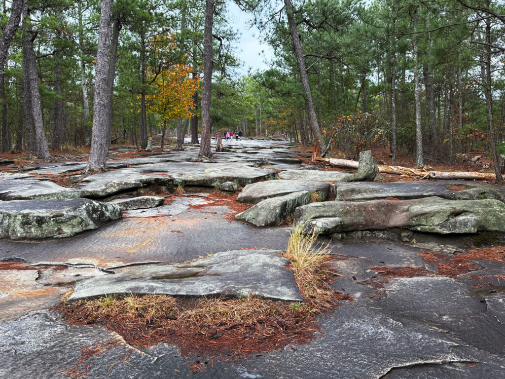 We volgen de navigatie naar Stone Mountan Park en rijden naar de Conferate Hall Parking Lot. We betalen de parkeerticket van 20 euro (per auto) en dan mogen we verder. We parkeren de auto en gaan als eerste de Walk Up Trail doen. Tijdens deze wandeling loop je de rots op die 250 meter boven het landschap uittorent.