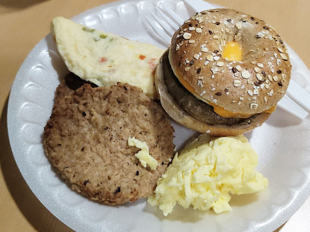 Maar eerst ben ik natuurlijk vroeg wakker door de jetlag. We besluiten maar op te staan en bij het hotel zit een uitgebreid ontbijt met breakfast-burgertjes met kaas en ei, je kunt er bagels toasten, er zijn scrambled eggs, yoghurt, fruit en er is havermout met allerlei toppings.