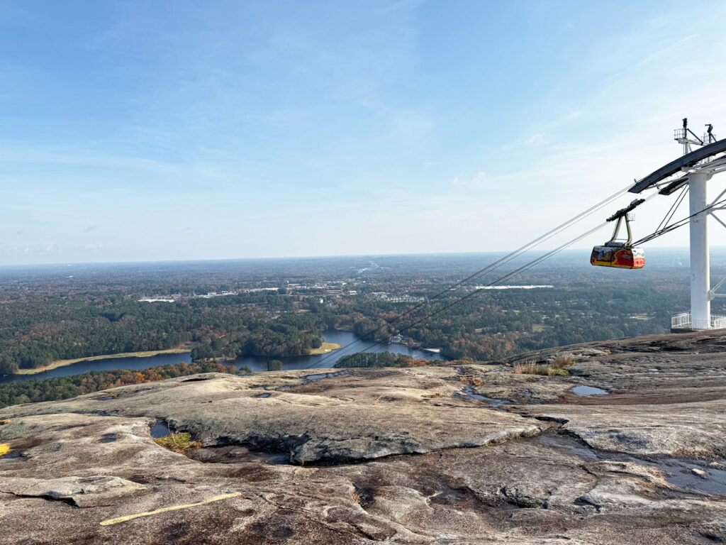 Het uitzicht wordt steeds mooier en we zien de skyline van Atlanta, omgeven door bomen met mooie kleuren. Bovenaan de top is een gebouw waar je met de kabelbaan kunt. Hiervoor dien je wel een apart kaartje te kopen. Hier is ook al alles in kerstsfeer.
