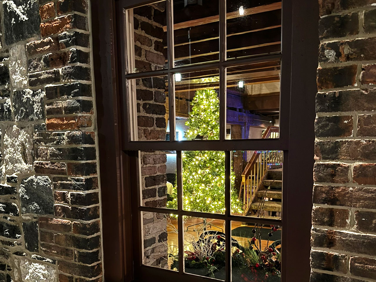 Het uitzicht wordt steeds mooier en we zien de skyline van Atlanta, omgeven door bomen met mooie kleuren. Bovenaan de top is een gebouw waar je met de kabelbaan kunt. Hiervoor dien je wel een apart kaartje te kopen. Hier is ook al alles in kerstsfeer.