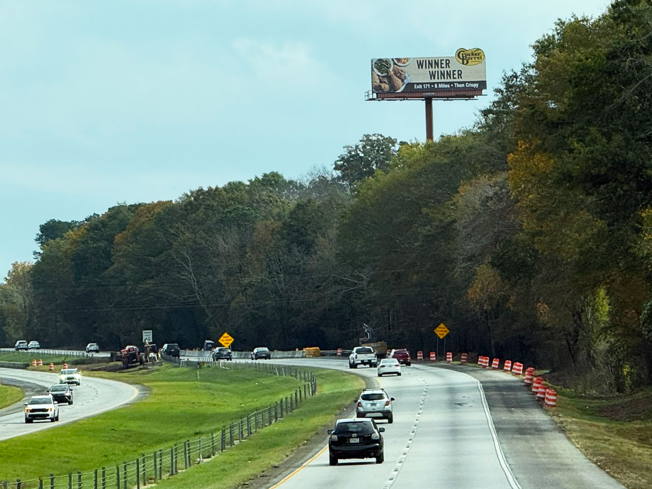 We gaan weer verder en het is anderhalf uur rijden voor de volgende tussenstop: Cracker Barrel! Bij Cracker Barrel is het druk! Omdat het vandaag Thanksgiving is, heb je niets te kiezen. Eten wat de pot schaft dus.