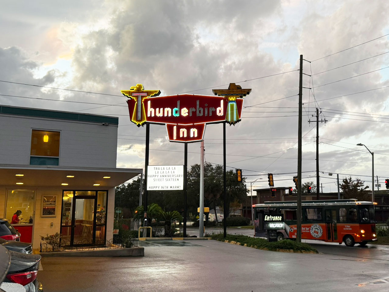 De roadtrip gaat verder en de overnachtingsplek voor vanavond is Savannah. We slapen in een retro-motel: De Thunderbird Inn. Dit motel ligt aan de rand van het historische centrum van Savannah. Het ziet er allemaal leuk uit! Er staan koekjes en cola voor ons klaar en bij het inchecken kun je verse popcorn en warme chocolademelk pakken.