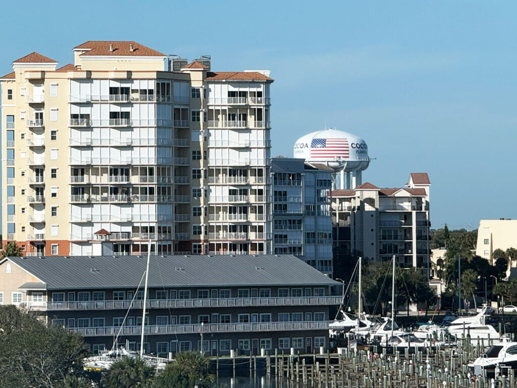 De ochtend begint met een ontbijtje van het hotel. Daarna maken we een ritje in de auto. Via Cocoa rijden we naar Titusville, op een half uurtje van Cocoa Beach. Vlak na de A Max Brewer Bridge parkeren we de auto aan het water. We hopen dolfijnen te spotten, maar die laten zich helaas niet zien.