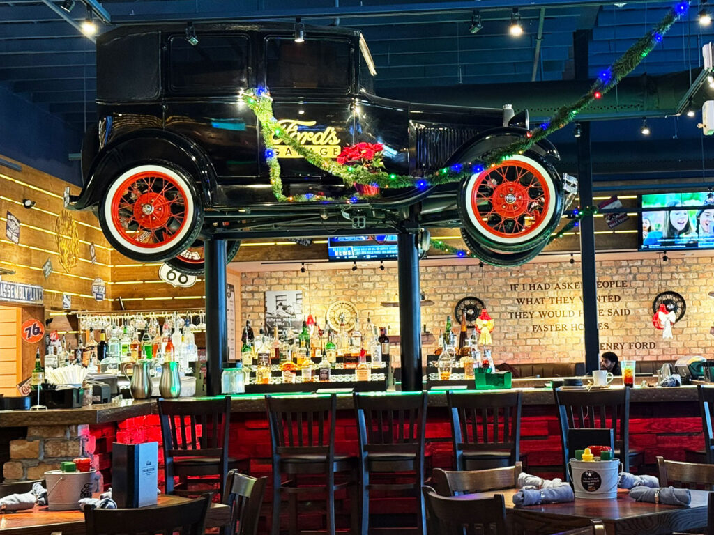 Deze reis wilde ik heel graag een keer eten bij een voor mij nog onbekende restaurantketen, namelijk Ford’s Garage. Ik had hier online veel goeds over gehoord. Er zijn er meerdere te vinden in Florida. We zoeken er eentje op en na een half uurtje komen we aan bij het restaurant voor een late lunch.